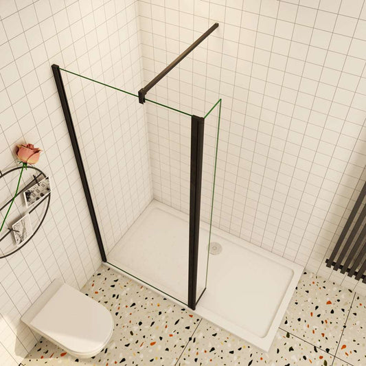 AICA Sprchový kút WALK IN CLEAR08B40P, sprchová zástena, veľkosť od 50-160cm, 8mm NANO sklo, 40cm otočný panel, čierna vzpera rôzne, Výška 200cm