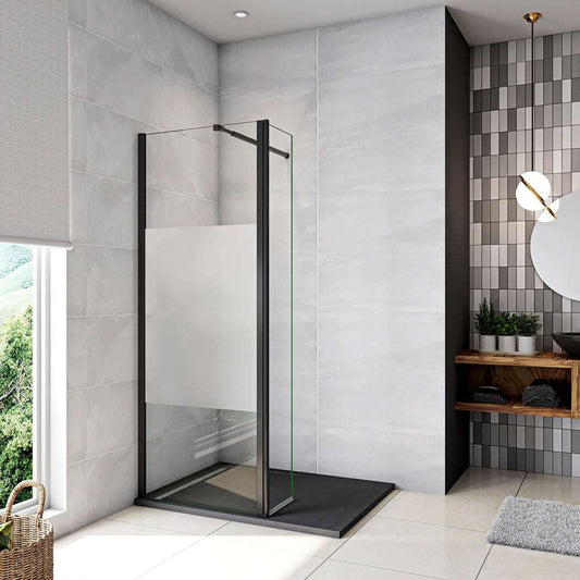 AICA Sprchový kút WALK IN CLEAR08B30P, sprchová zástena, veľkosť od 50-160cm, 8mm NANO sklo, 30cm otočný panel, čierna vzpera rôzne, Výška 200cm